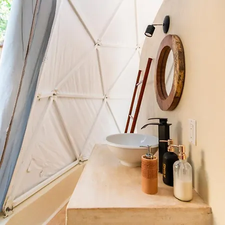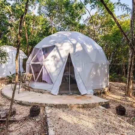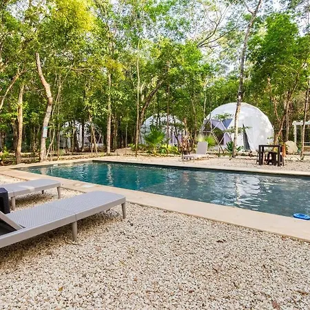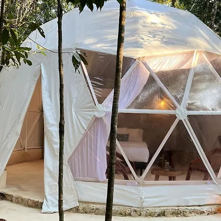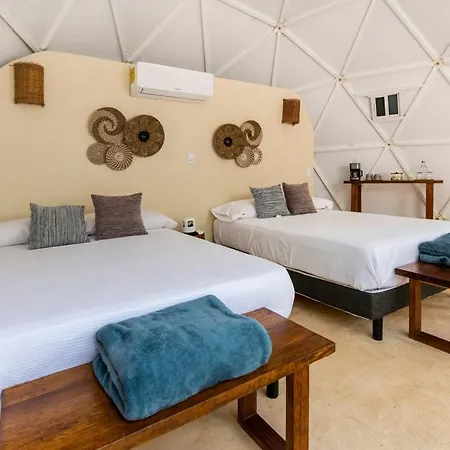 Glamping Mayan Glam Hotell, som ligger cirka 25 minuters gångavstånd från Tulum Underwater, erbjuder gästerna en parkering.